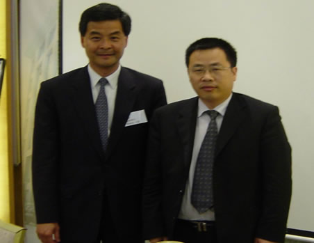 潘世炳博士在深圳与戴德梁行主席、全国政协常委、香港专业联盟主席、香港行政会议员和召集人梁振英先生合影