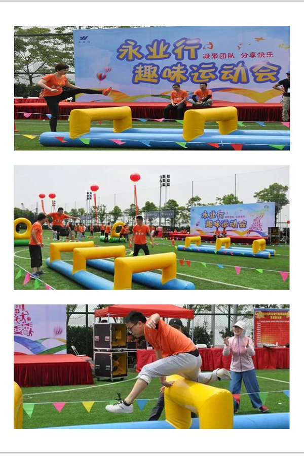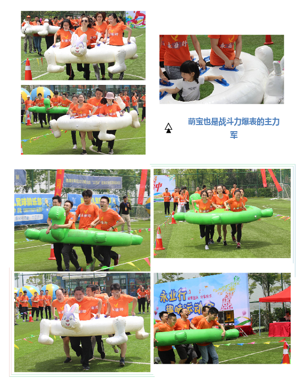 本届趣味运动会共设置了6个比赛项目,考验协作的蛟龙出海、活泼调皮的龟兔赛跑、惊险刺激的运转乾坤、奋勇冲刺的障碍接力、齐心协力的旱地龙舟、拼尽全力的拔河比赛……比赛过程挑战与趣味并存,不仅锻炼了团队协作能力,更是对队员们体力、耐力的考验。比赛现场,运动健儿的激烈角逐,激动人心;观赛团队的呐喊助威,震耳欲聋,大家不顾被烈日晒红的皮肤、被汗水浸透的衣衫,拼尽全力为团队荣誉而战,沉浸在运动带来的激情与快乐中。在冲过终点的瞬间,落后时的相拥鼓劲,胜利后的击掌庆祝,作为永业行人的自豪感与荣誉感油然而生。一轮轮激烈的角逐后,各组队员由比赛之初时的“矜持”快速发展成为相拥庆祝的战友。如果说一场比赛建立不了感情,那么,就来两场?