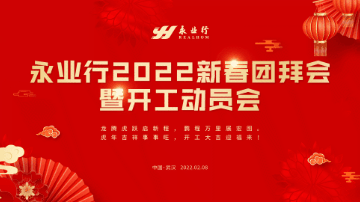 金牛辞旧岁,福虎迎新春。2月8日,农历正月初八,永业行2022年新春团拜会暨开工动员会在总部隆重召开。党委书记、董事长潘世炳,轮值总裁王琴,副总裁雷小军、文云波、吴学锋、程为民,助理总裁金建华、雷小明,与1200余名员工通过线上线下相结合的方式齐聚一堂,共贺新年、派发红包、分享心得、畅谈见闻、展望远景,开启新征程,共绘新画卷。