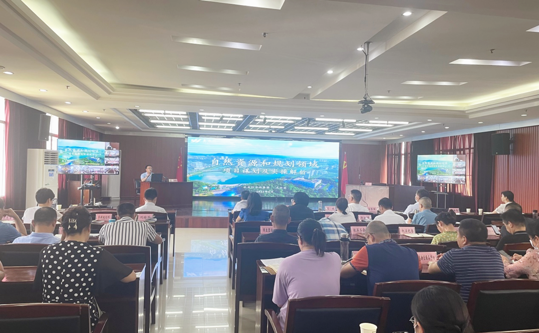 2022年6月17日,咸宁市自然资源和规划局举办全市自然资源和规划系统“第3期干部学习大讲堂”。永业行副总裁文云波受邀作自然资源和规划领域项目谋划及实操解析专题培训。咸宁市自然资源和规划局党组成员、副局长石健主持会议。