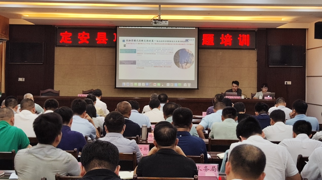 4月21日,定安县人民政府组织召开项目谋划专题培训会,县委书记刘峰松,县委副书记、县长冯云飞,县政协主席符气和等县领导出席会议。县委常委、县政府副县长黄海鹄主持会议。永业行投资咨询事业群高级咨询顾问甘振昱受邀就专项债券项目谋划及发行实务解析做专题培训交流。