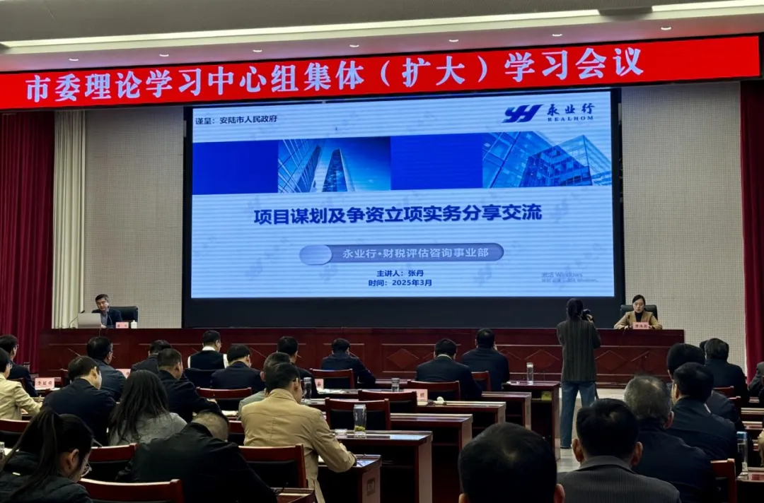 2025年3月27日,安陆市政府组织召开市委理论学习中心组集体(扩大)学习会议,副市长曾凤祺主持会议。永业行财税评估咨询事业部技术中心总经理张丹作2025年项目谋划及争资立项实务分享交流。