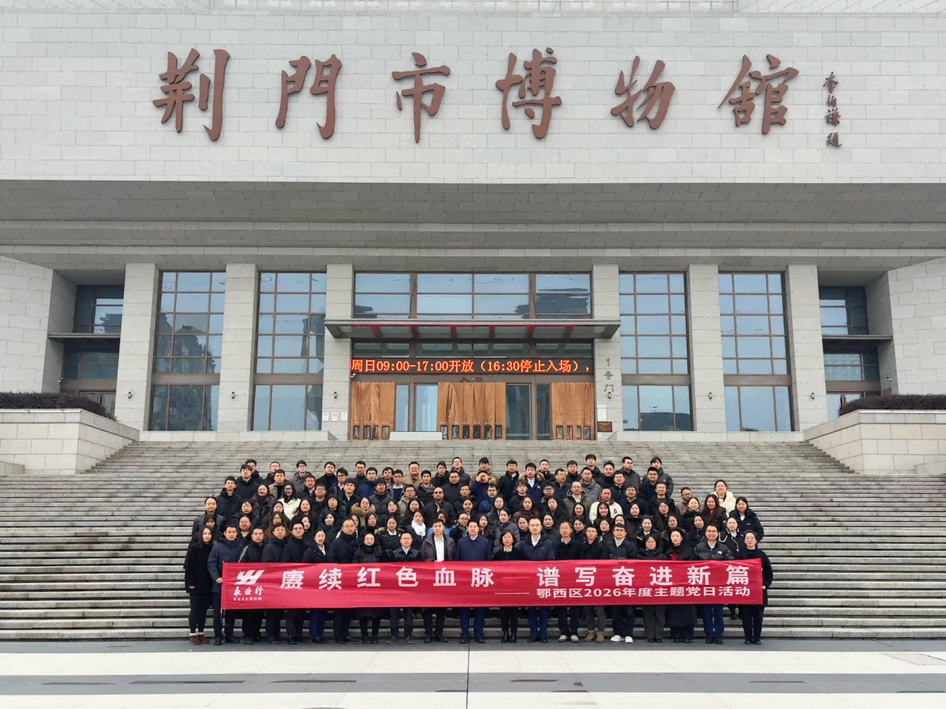 2026年1月30日,永业行鄂西党支部组织全体党员与管理团队赴荆门市陈士榘将军故居和荆门市博物馆开展“赓续红色血脉,谱写奋进新篇”主题党日活动。永业行党委委员、鄂西党支部书记、副总裁兼鄂西区总经理雷小明参加活动,并邀孝感分部总经理梁小虎及管理团队参加。 在故居广场前,全体人员在雷小明的带领下重温入党誓词,庄严宣誓,表达赓续红色血脉、牢记初心使命的决心。在陈列展厅,大家怀着崇敬的心情驻足参观,通过历史照片、文献资料,深入了解将军从参加秋收起义、长征到抗日战争、解放战争,再到新中国国防科技建设的辉煌一生。将军“一生为党、忠诚奉献”的革命
