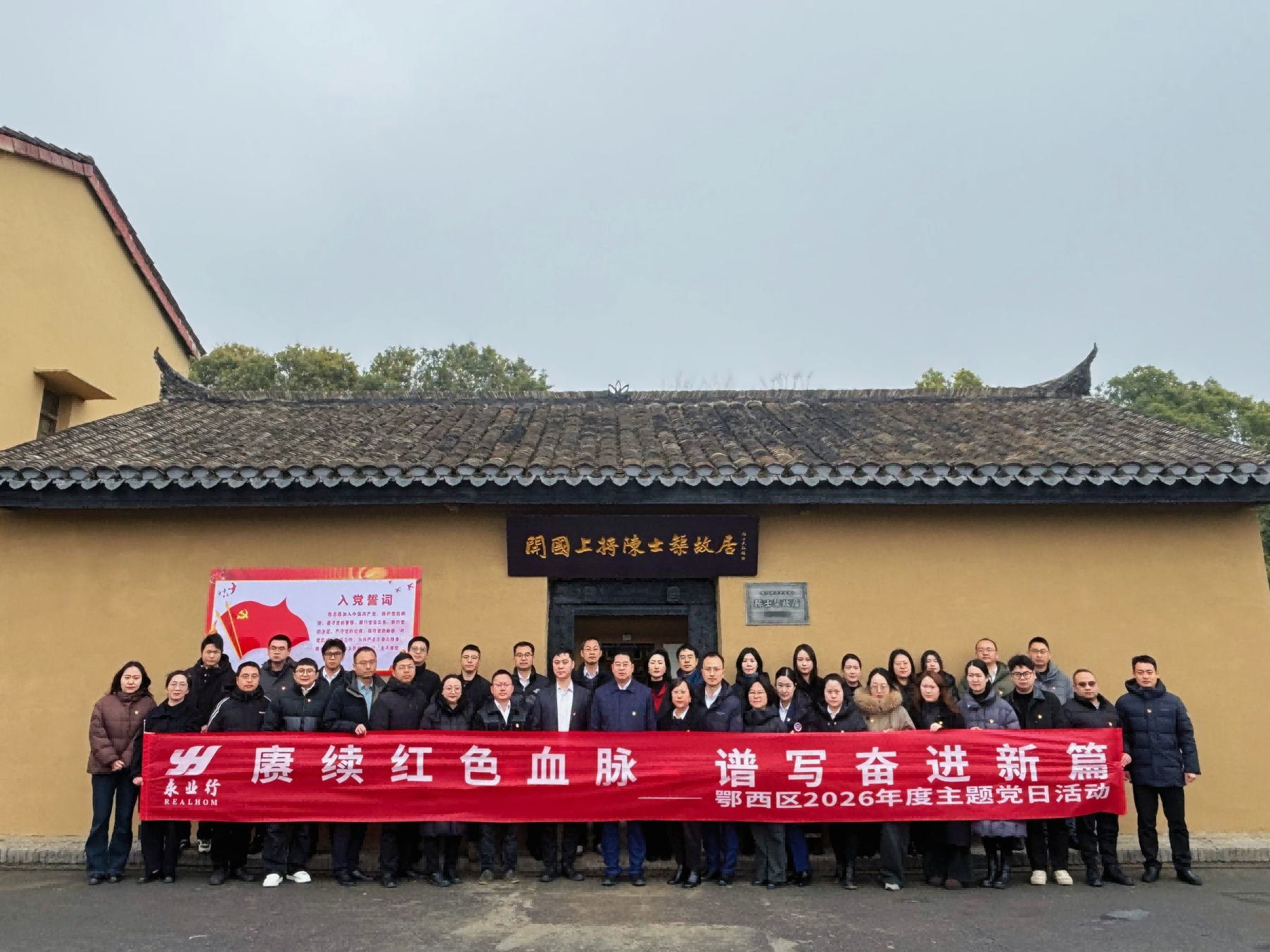 2026年1月30日,永业行鄂西党支部组织全体党员与管理团队赴荆门市陈士榘将军故居和荆门市博物馆开展“赓续红色血脉,谱写奋进新篇”主题党日活动。永业行党委委员、鄂西党支部书记、副总裁兼鄂西区总经理雷小明参加活动,并邀孝感分部总经理梁小虎及管理团队参加。