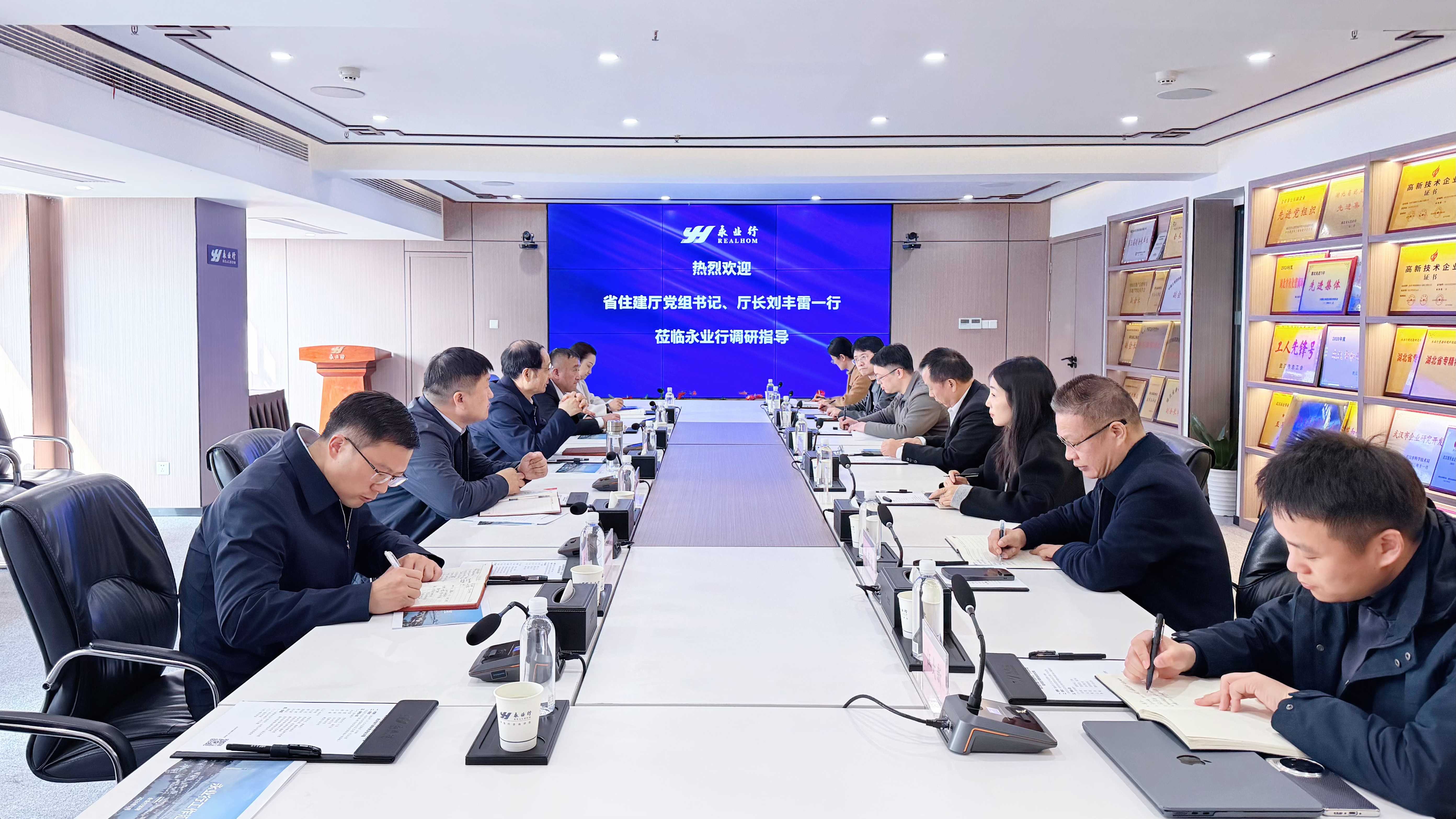 2026年3月12日,湖北省住房和城乡建设厅党组书记、厅长刘丰雷一行莅临永业行调研指导,党组成员、副厅长刘震陪同调研。永业行党委书记、董事长潘世炳,常务副总裁文云波,财务总监、投资咨询事业群总经理杨凤参加调研座谈会。
