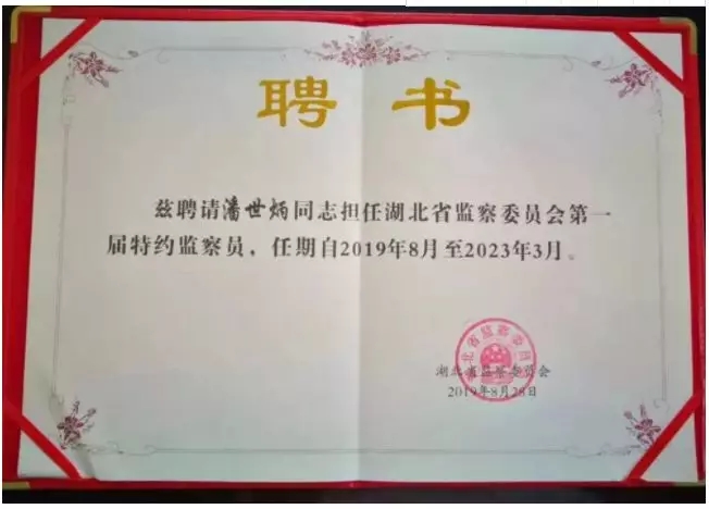 永业行董事长兼总裁潘世炳受聘为省纪委监察委首批特约督查员;当选为中估协第五届常务理事,为湖北唯一的常务理事;获得先进参事奖、参政建议一等奖和支持参事工作奖、湖北省优秀企业家(金牛奖)称号。
